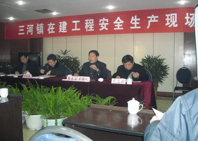 三河鎮(zhèn)在建工程安全生產(chǎn)現(xiàn)場(chǎng)會(huì)于2009年12月19日09時(shí)在三河國(guó)際大酒店隆重召開(kāi),肥西縣建設(shè)局黨組書記張永安同志參加并主持會(huì)議,參加會(huì)議的領(lǐng)導(dǎo)還有肥西縣建設(shè)局局長(zhǎng)李紹敏,副局長(zhǎng)解軍培,副局長(zhǎng)戴忠德等。