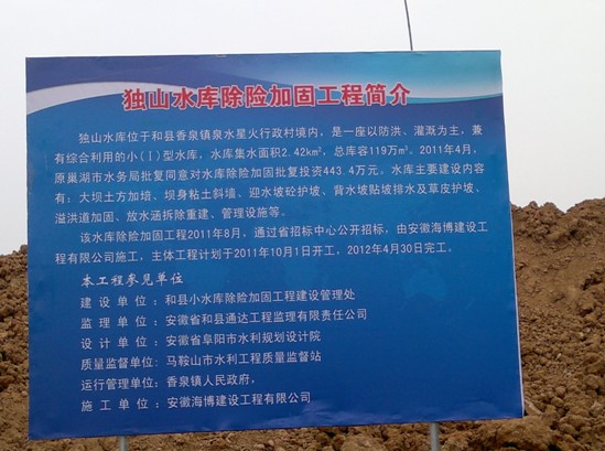10月20日上午,馬鞍山市水利質(zhì)檢站專家對(duì)由我公司承建的和縣兩座小(一)型水庫(kù)獨(dú)山水庫(kù)和大金莊水庫(kù)除險(xiǎn)加固工程的重要關(guān)鍵部位放水底涵基槽進(jìn)行了驗(yàn)收。