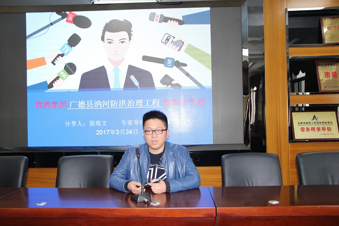 2018年3月24日在集團公司培訓中心舉行了聯海集團第一次項目經營管理復盤分享會,本次分享會由廣德縣汭河防洪治理工程項目經理裴高文從項目概況、項目實施、項目收益三大方面對項目進行詳細的復盤總結。復盤結束后,以集團各公司業務板塊、職能部門為小組,由分管負責人組織小組成員討論,并現場提出問題,與分享人進行交流互動,取得了良好的效果。
