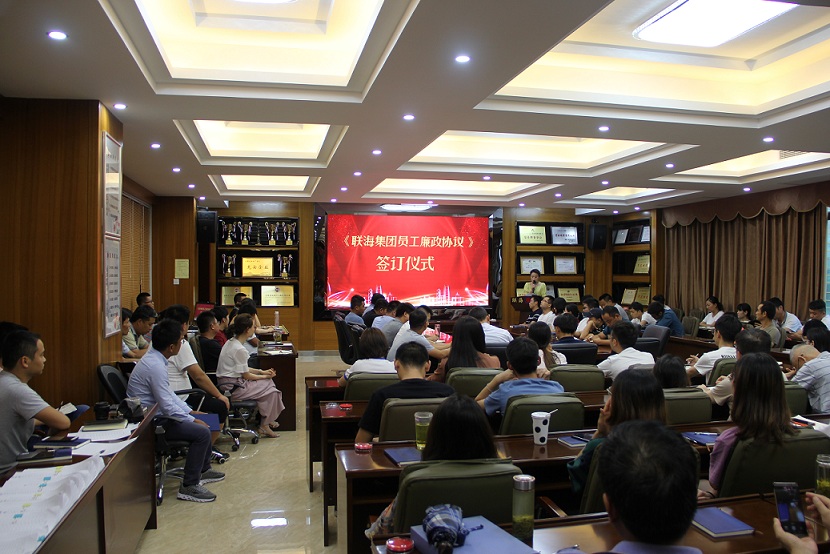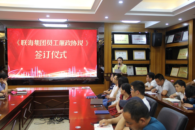 為加強集團廉政建設,嚴肅工作作風,構(gòu)建誠信體系。7月12日,集團公司舉行了員工廉政協(xié)議簽訂儀式,集團董事長、各版塊分管領導等全體聯(lián)海同仁分別簽訂了《聯(lián)海集團員工廉政協(xié)議》。