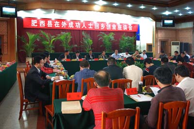 10月15日上午,我公司執行董事曹張伯應邀參加了肥西縣在外成功人士回鄉創業座談會。肥西籍外出創業人才、已回鄉創業人才代表匯聚一堂,共敘鄉情,共商肥西發展大計??h領導陳曉波、李海鷹、孫明權、夏倫平、羅平、黃衛東、楊光磊、汪厚云,各鄉鎮鄉鎮長和縣直相關單位負責同志等出席會議。